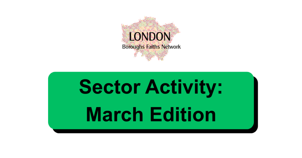 Here you can find a range of resources from the wider sector. This content is part of the London Boroughs Faiths Network bi-monthly newsletter.