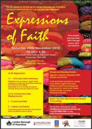 10.30am – 4pm Expressions of Faith with Hounslow Friends of Faith, supported by London Borough of Hounslow at Hounslow Civic Centre, Lampton Road, Hounslow TW3 4DN. A day to celebrate how people express their faith through music, arts and fashion.